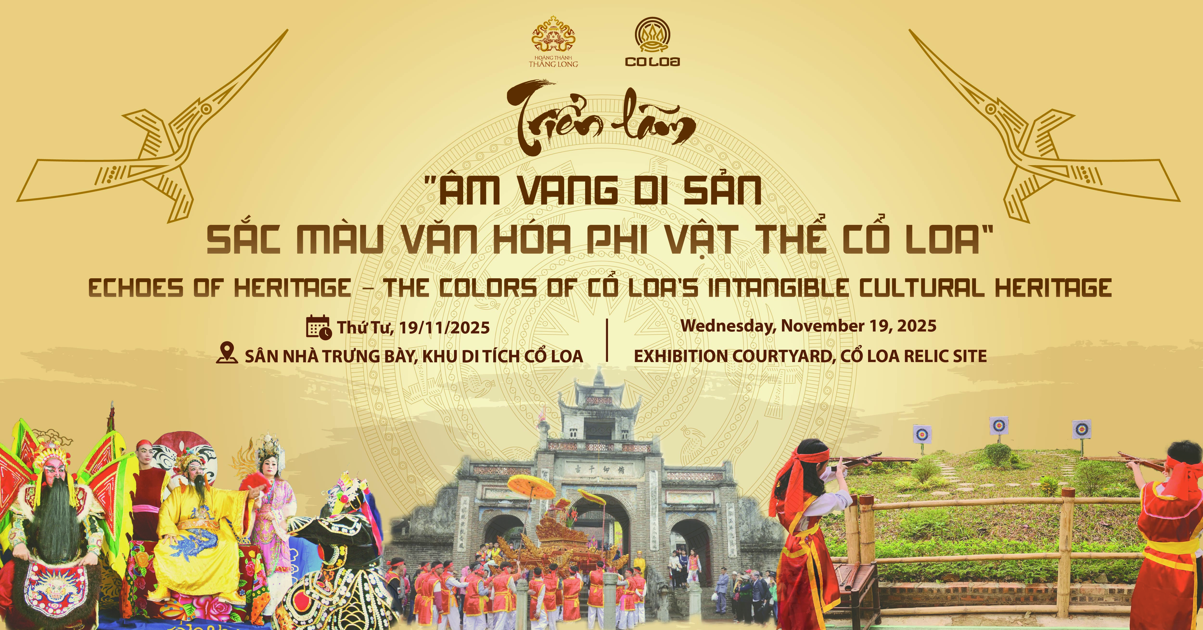 Chào mừng kỷ niệm 20 năm Ngày Di sản văn hóa Việt Nam (23/11/2005 – 23/11/2025) , Trung tâm Bảo tồn di sản Thăng Long - Hà Nội, Ban Quản lý Khu di tích Cổ Loa, UBND xã Đông Anh tổ chức triển lãm chủ đề “Âm vang di sản – Sắc màu văn hóa phi vật thể Cổ Loa”.
